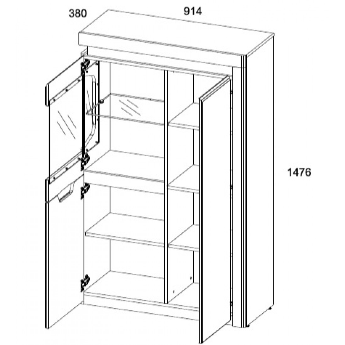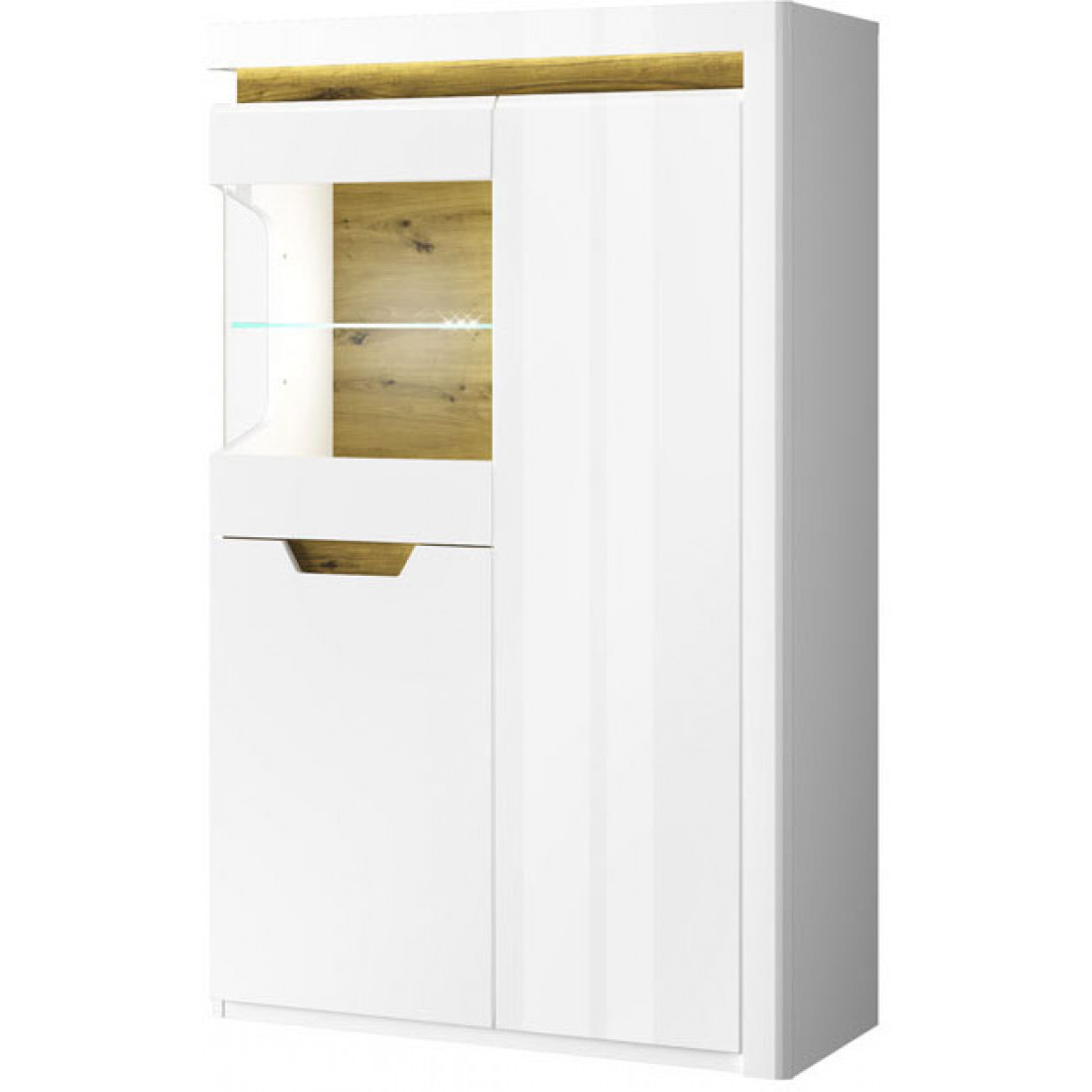 Шкаф с витриной Torino 1V2D P благодаря нетрадиционному дизайну является отличным вариантом для тех, кто всегда следует новым веяниям моды.