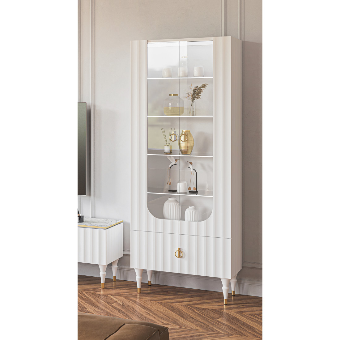 Шкаф-витрина навесной Лоренсо МН-043-02/03 белый