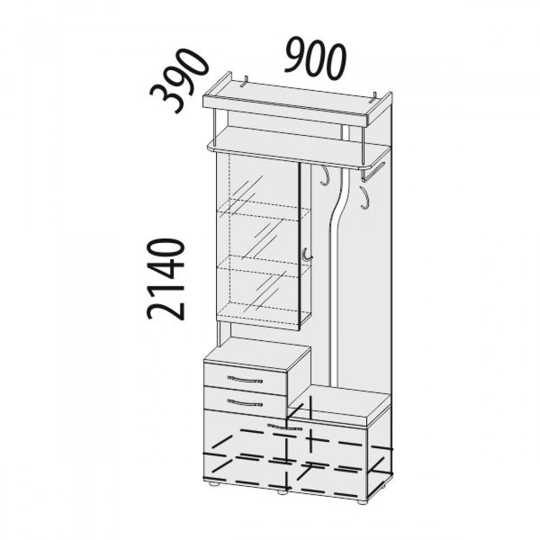 900×390×2140 мм