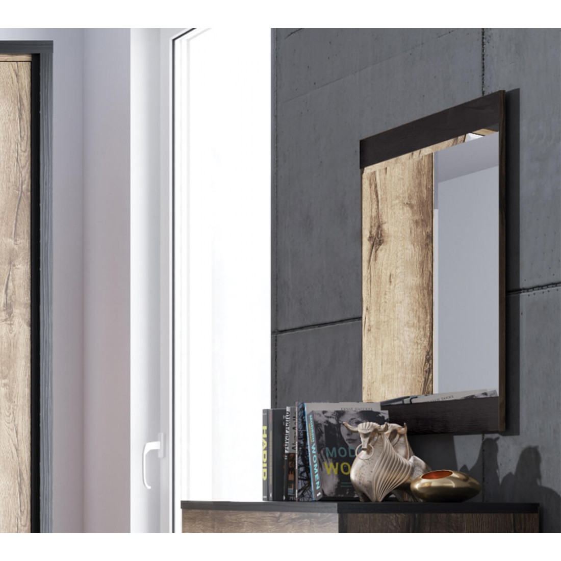 Настенное зеркало из коллекции JAGGER от белорусской мебельной фабрики Anrex. Деревянная структура с лаконичными формами отлично подойдет для минималистичного интерьера и ценителей натуральных материалов.